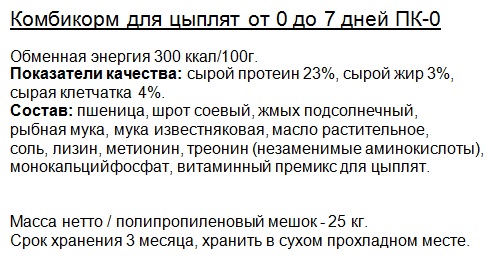 ПК-0 для цыплят от 0 до 7 дней (мелкая крупка до 1мм) |