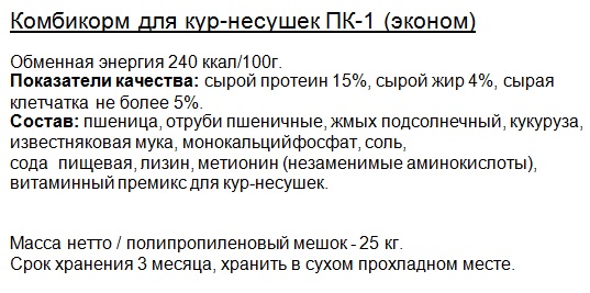 ПК-1 эконом для кур-несушек (мелкая гранула - диаметр 2,5мм, длина 4-6мм) |